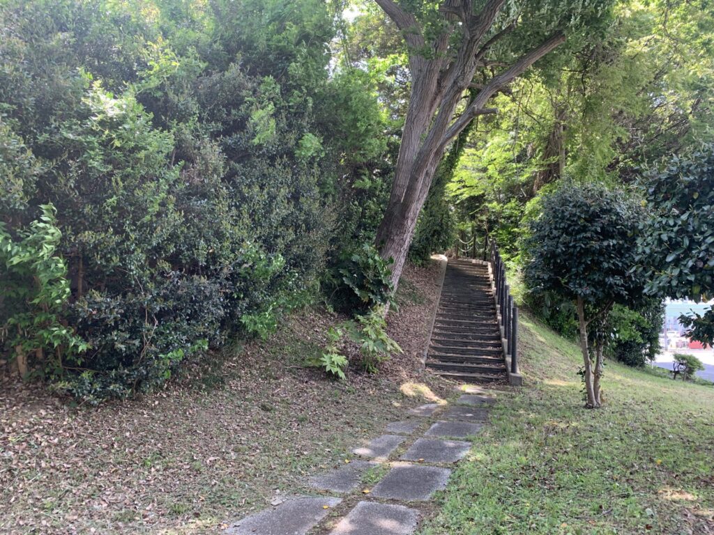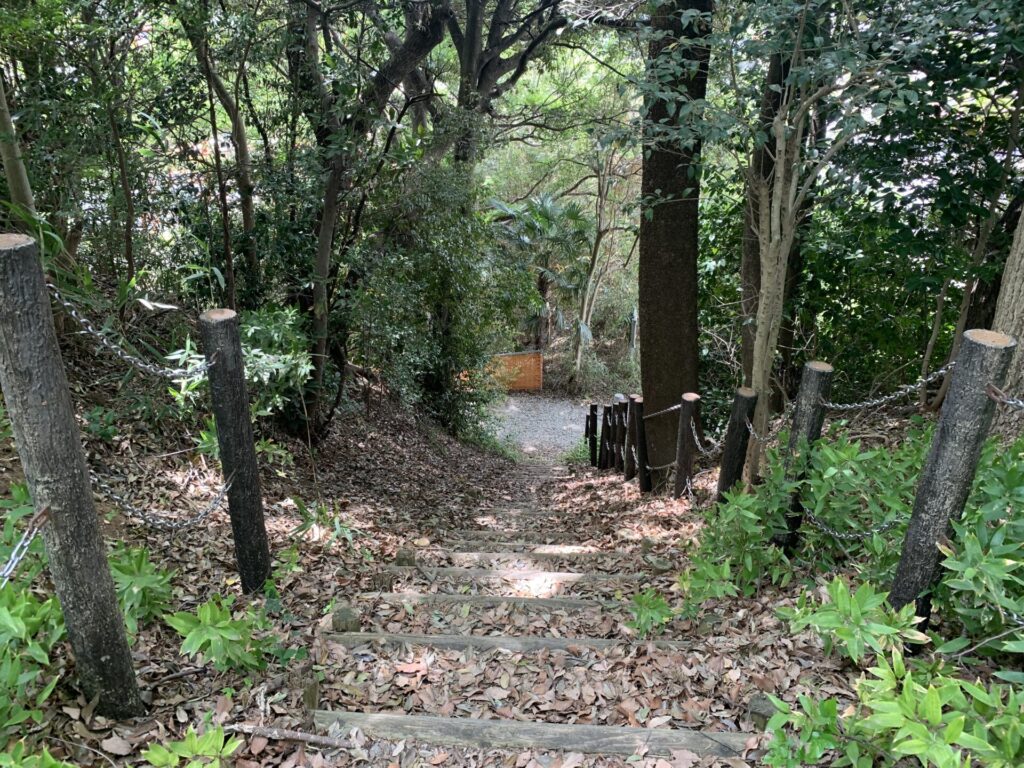 それでは、こちらの石段から下に降りていきます。