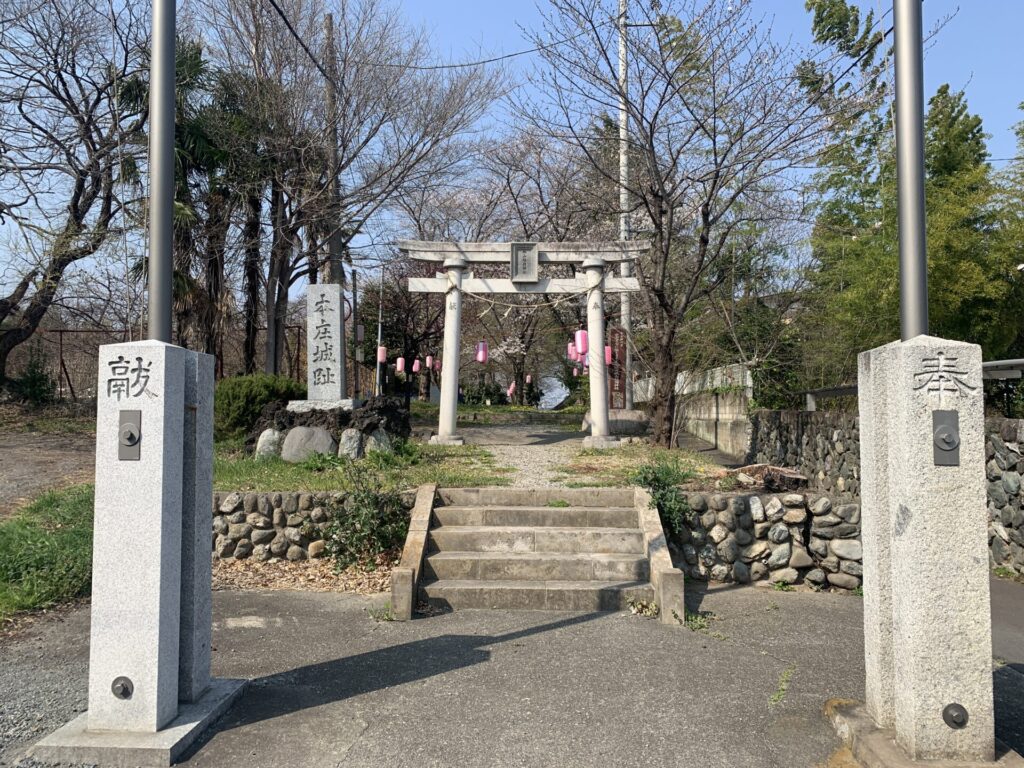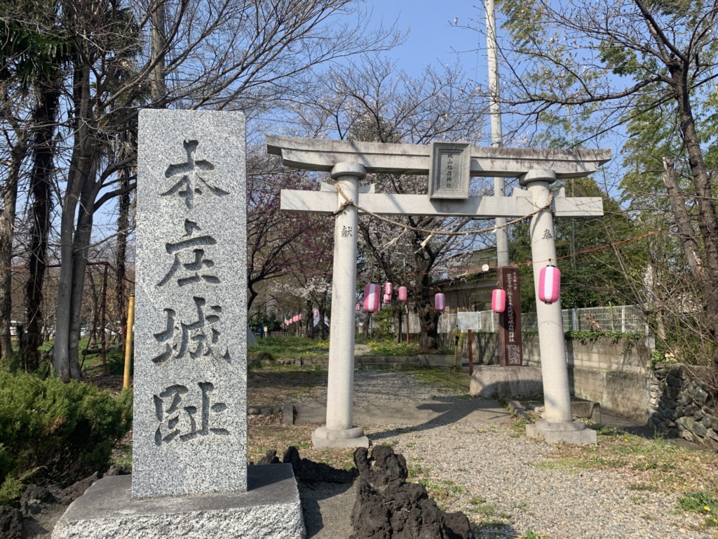 『本庄城跡』の石碑とともに、分かりやすい鳥居を発見!