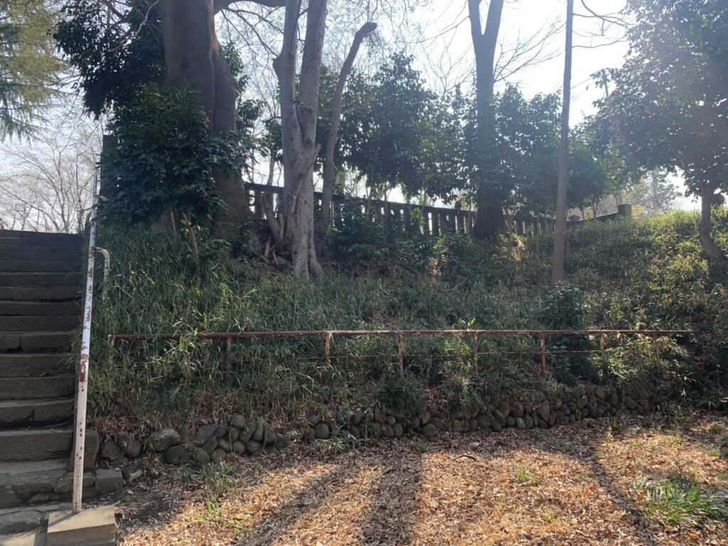 社殿の脇から再び城跡と思われる場所を撮影📸