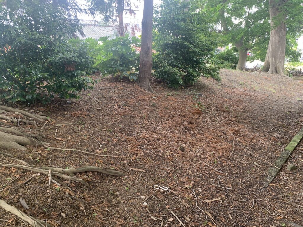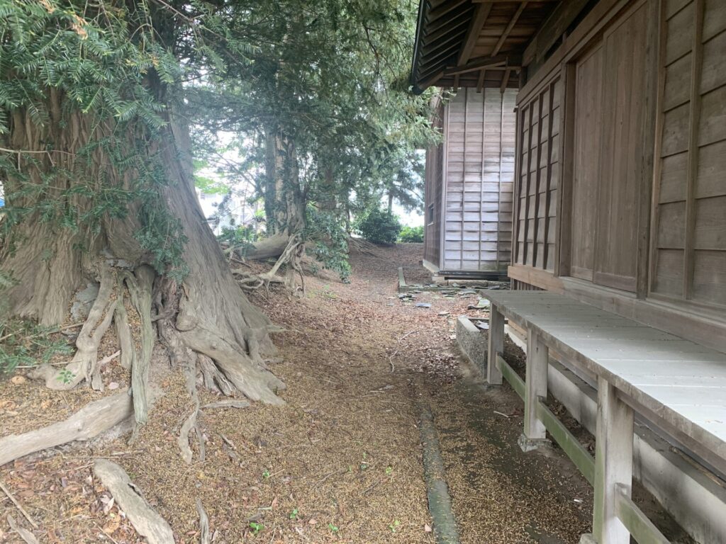 境内の裏手にも、うっすらと土塁跡が広がっていました。