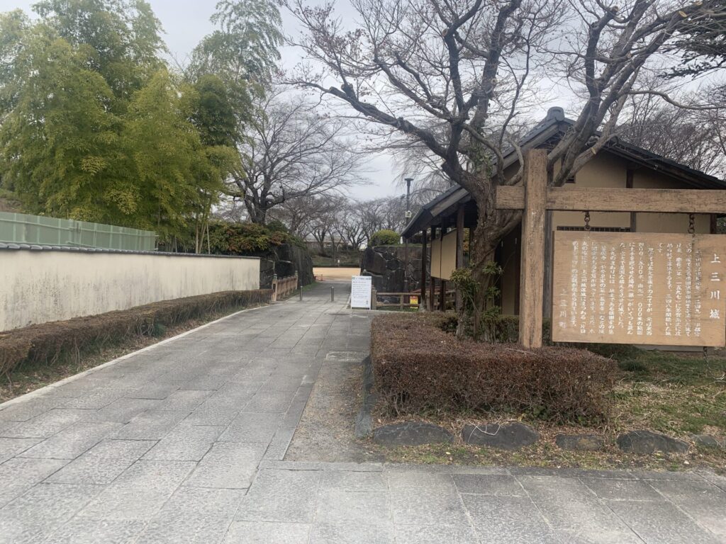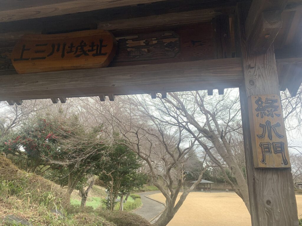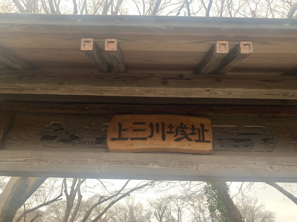 門の上に、「上三川城址」の表記が!