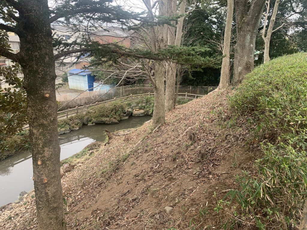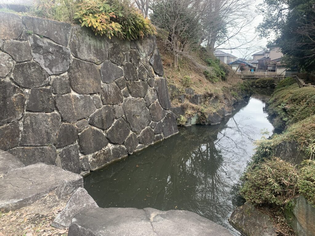 土塁の上から眼下に水堀を見下ろしてみました。