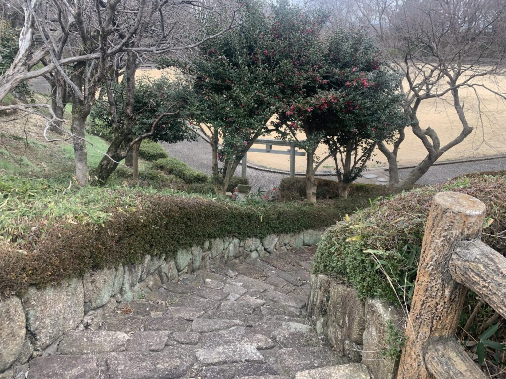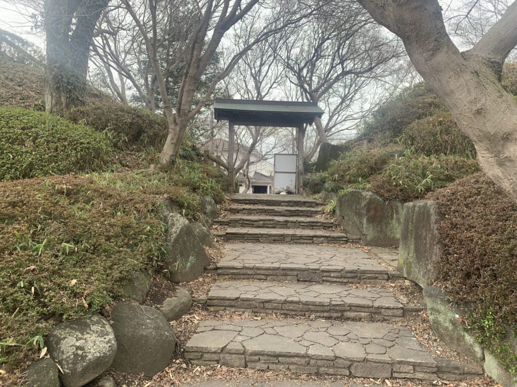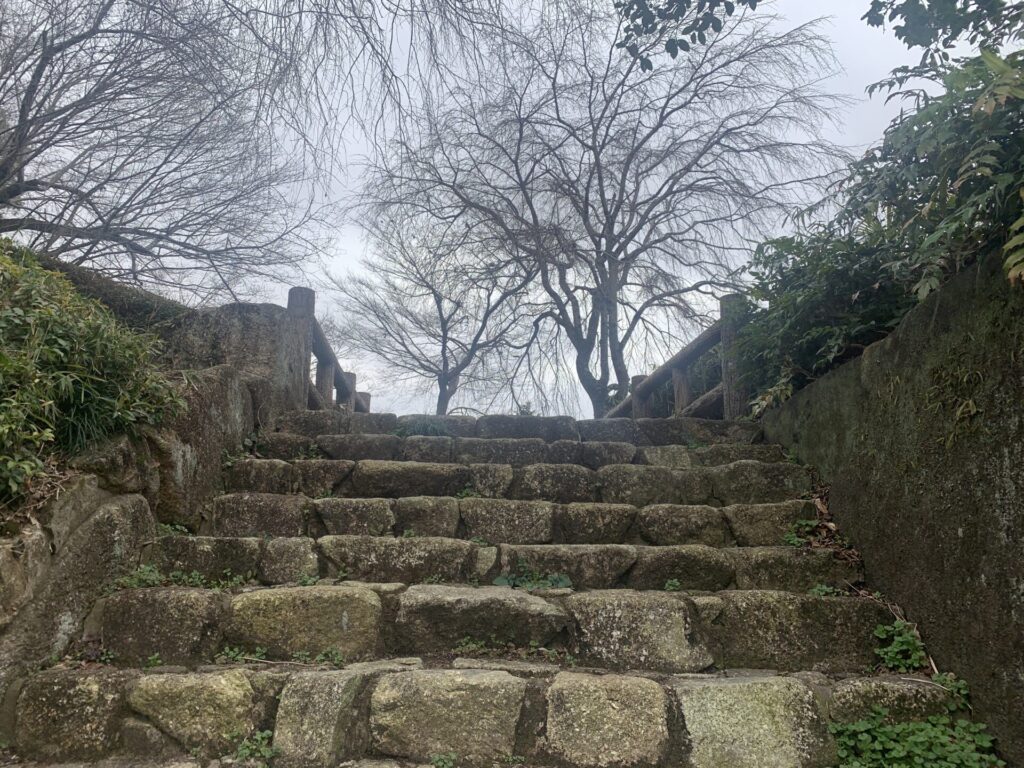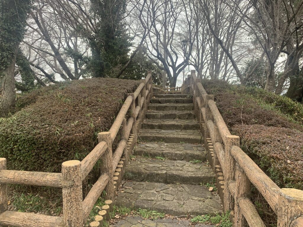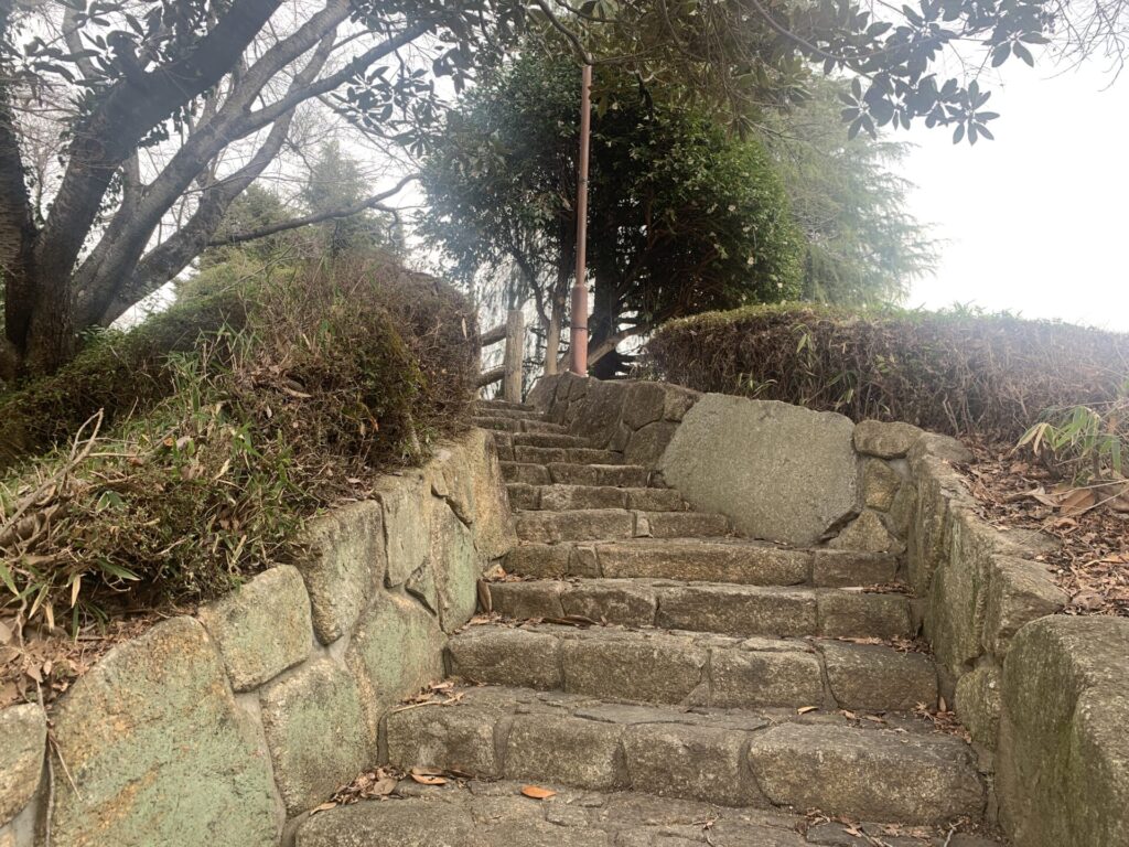 それでは次に、こちらの石段から土塁の上へ参ります🚶♀️