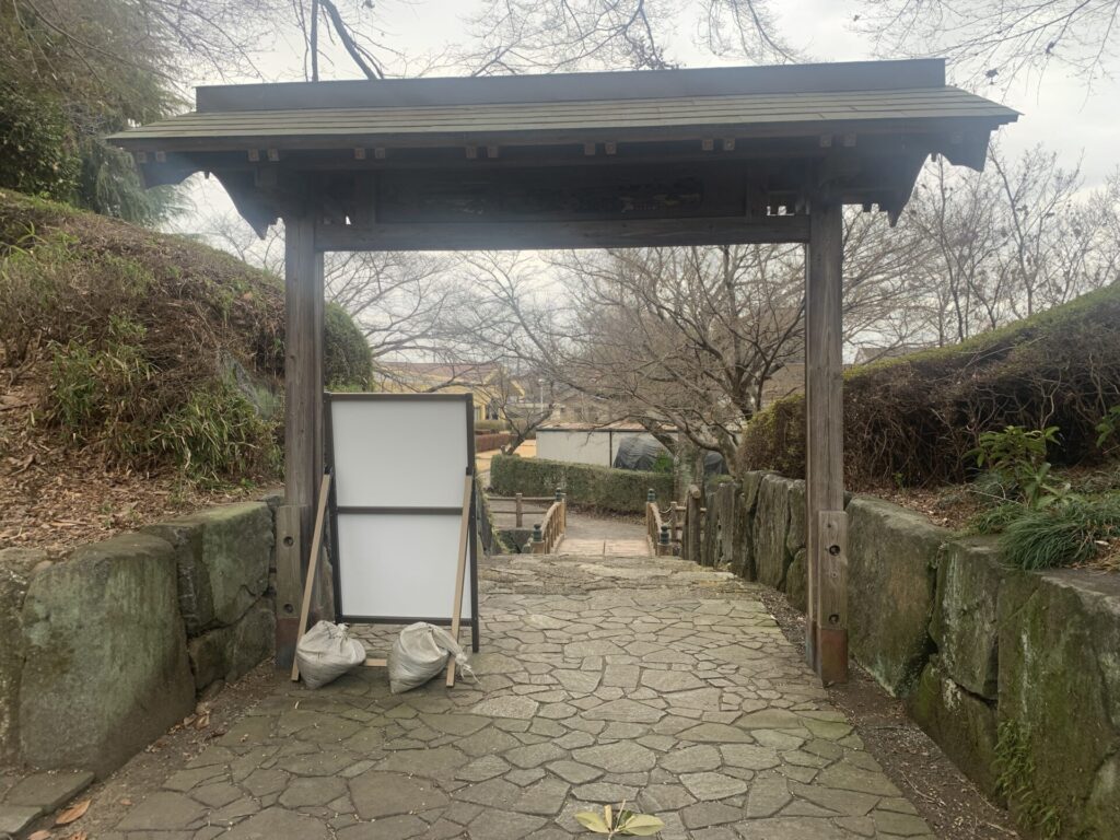 いったん土塁の石段を降りて、公園のちょうど東側中央に、このような門構えが!