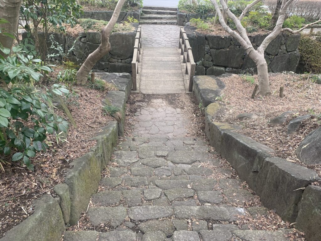 ご覧のように、この公園内には、ところどころ石段があります。