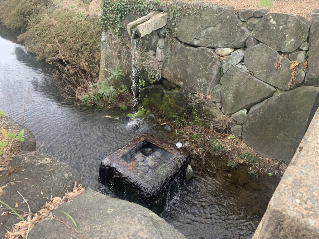土塁上の遊歩道を歩いていた時から、チョロチョロと水音がして気になっていたのですが、、