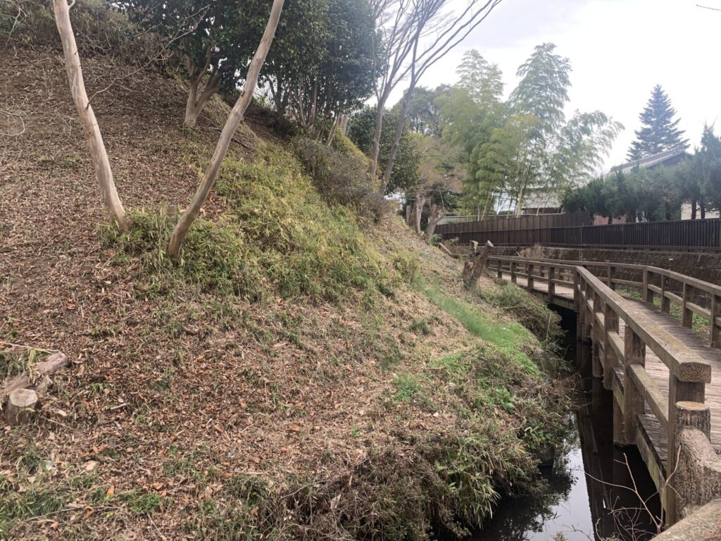 ここの橋の上から、あらためて土塁を撮影📸