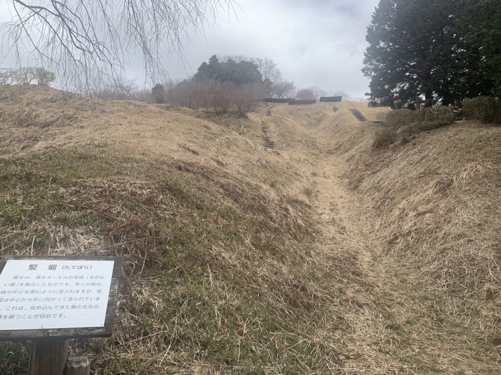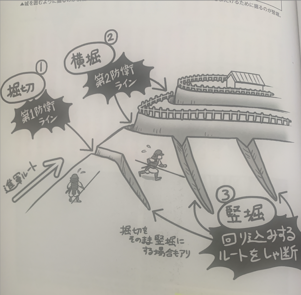 このように、城を攻める敵兵が山腹を自由に横移動できないように縦に掘り下げたものが堅堀(たてぼり)というわけですね。