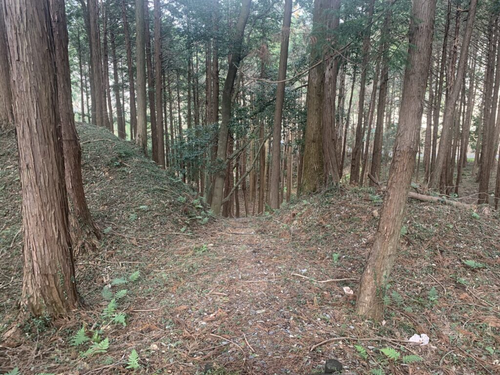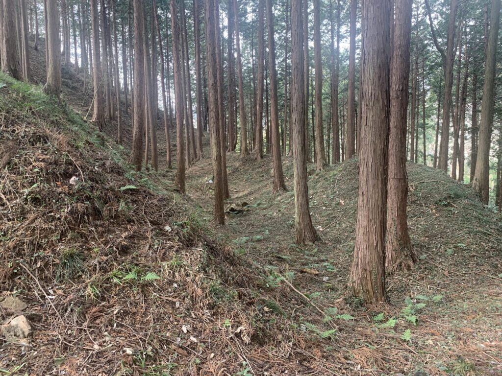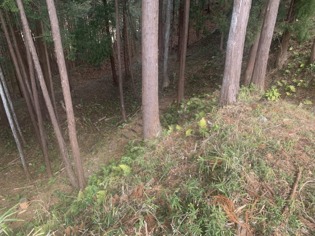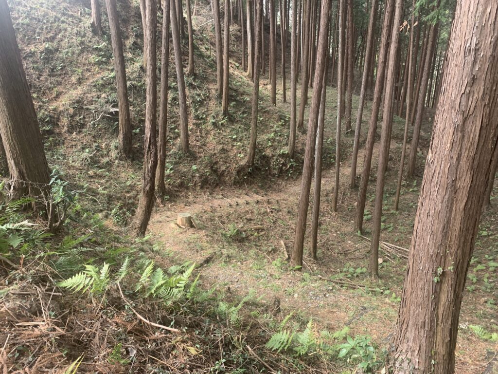 戦国当時はおそらくもっと深く、敵兵は山腹の横移動に苦戦したことでしょう。。