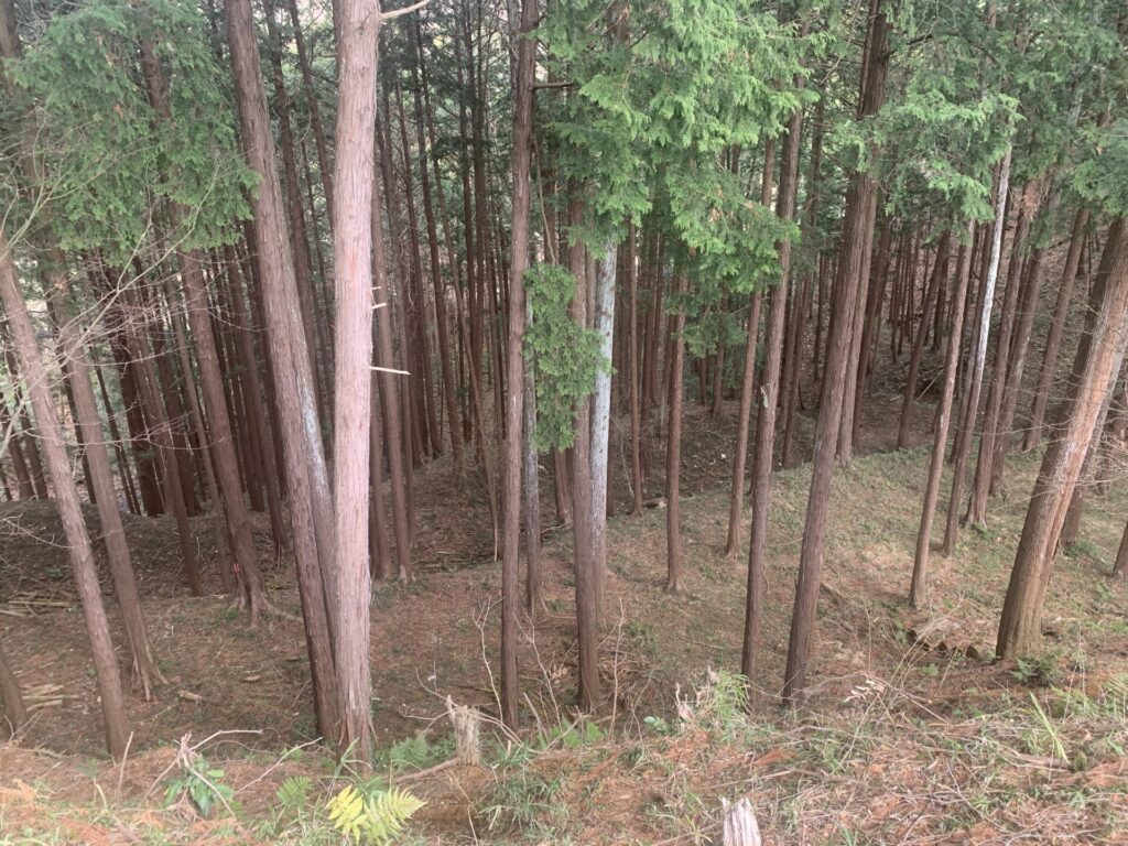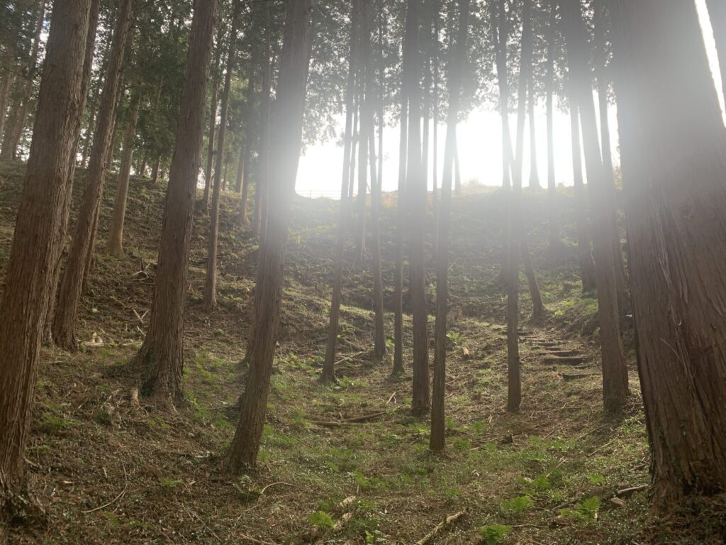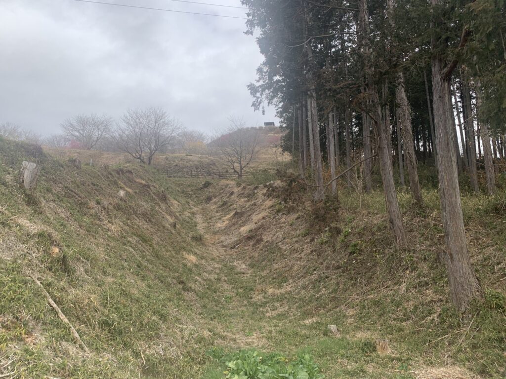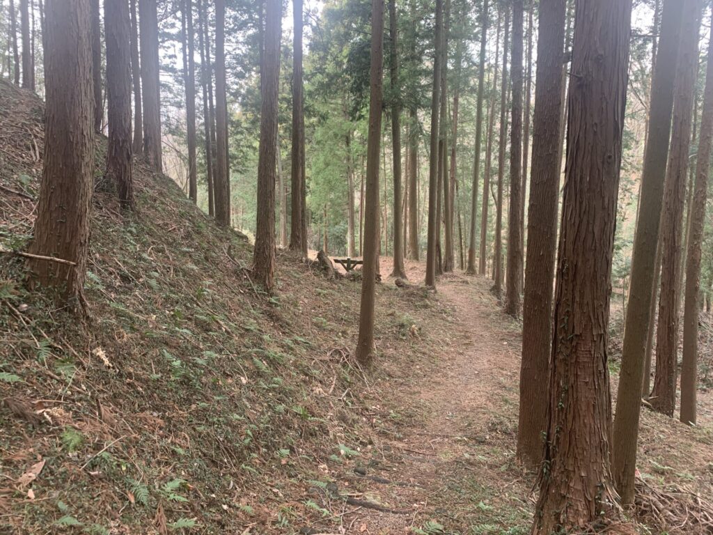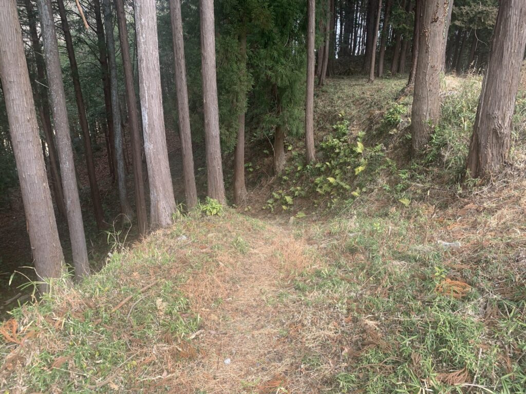 戦国当時はおそらくもっと深く、敵兵は山腹の横移動に苦戦したことでしょう。。