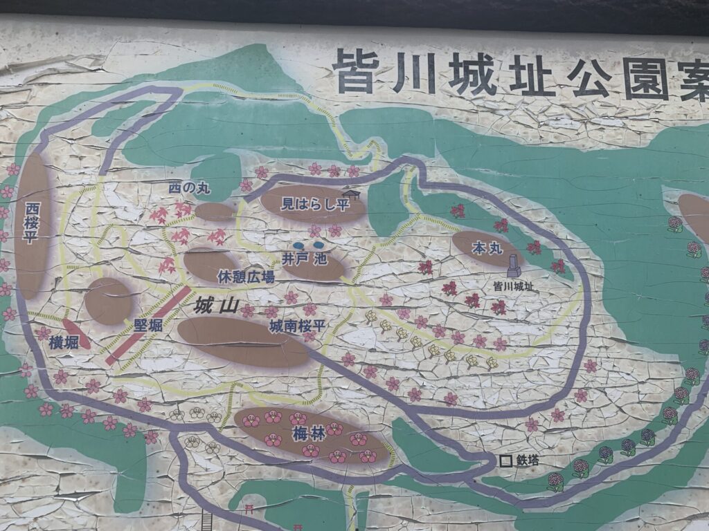そして中に少し道を進むと、こちらの城跡公園案内図があります。