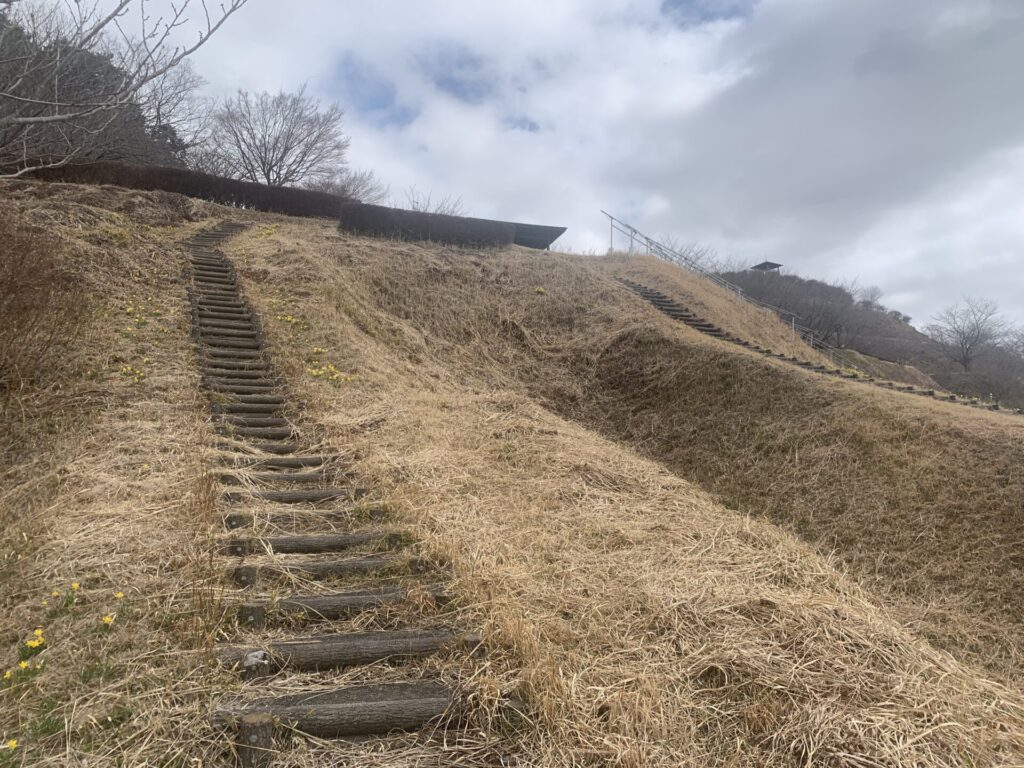 実は、一番最初の道を登ってくる時も山の最下部にそれらしき平らなスペースが見えたのですが、