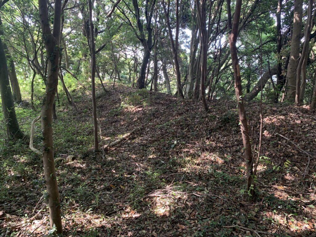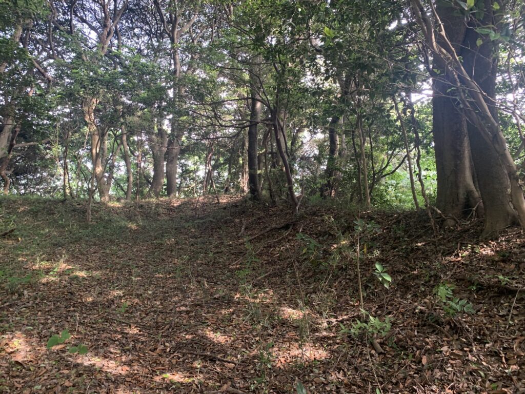 写真のように、土塁が前方の視界を遮っていますが、その先に行くと、、。