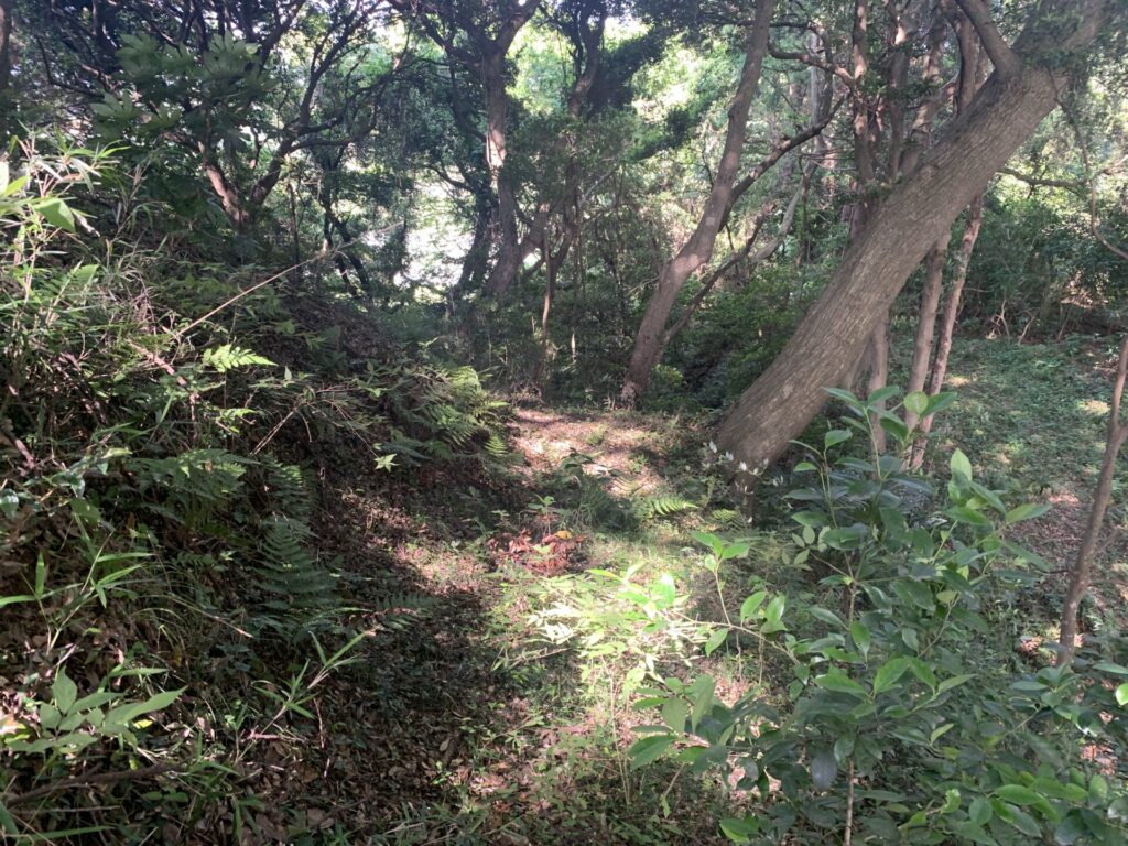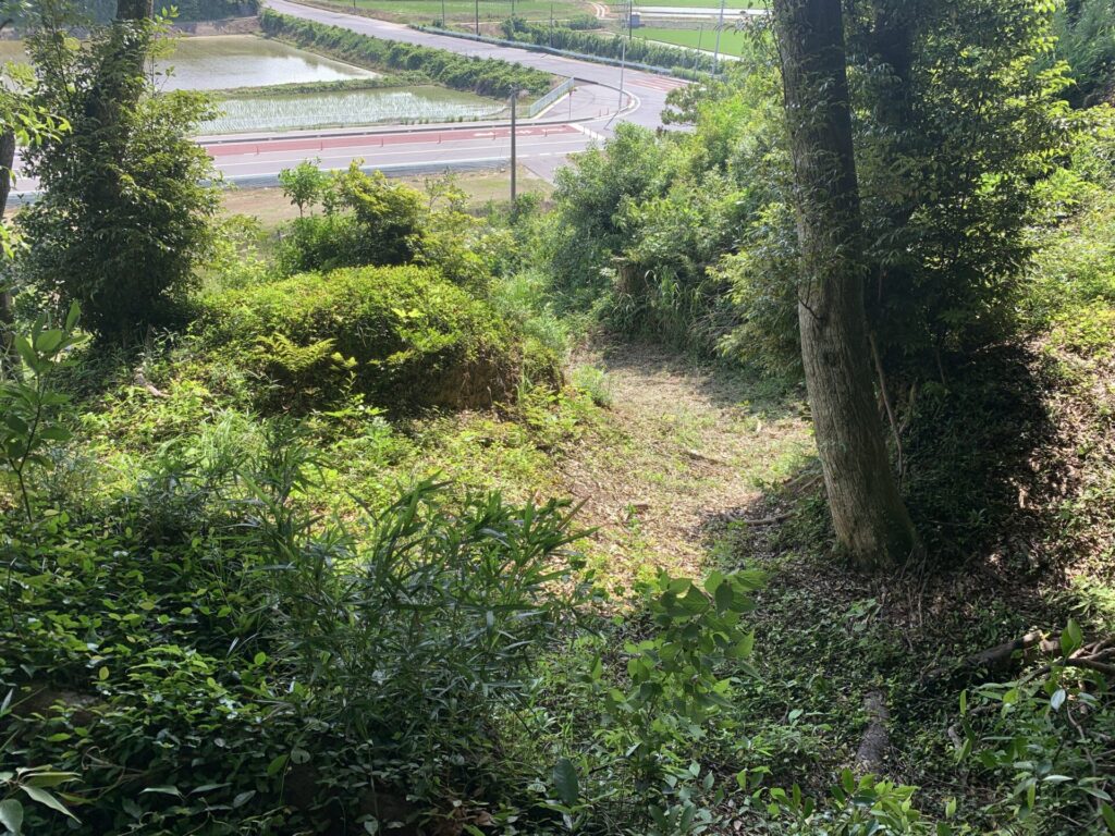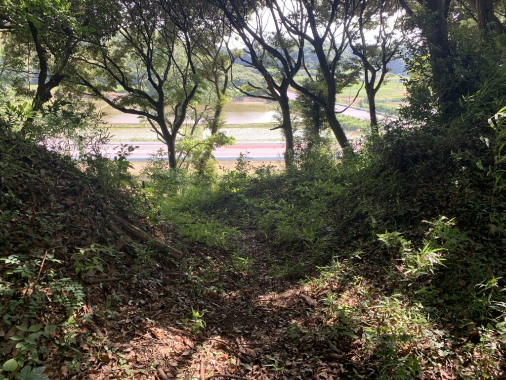道の下側に見えている窪みは、最初に通ってきた空堀です。