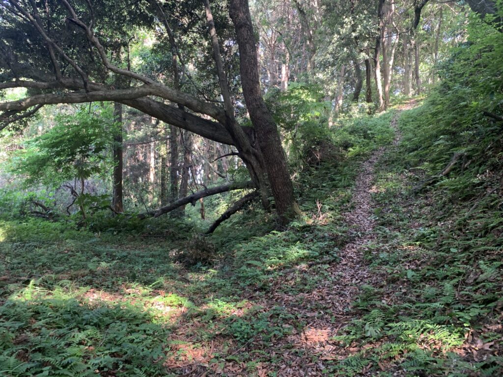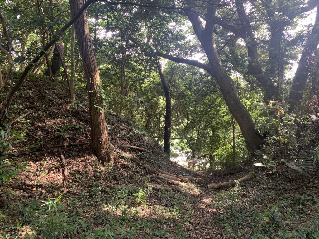 写真の左手に見える道が、最初に通ってきた空堀です。