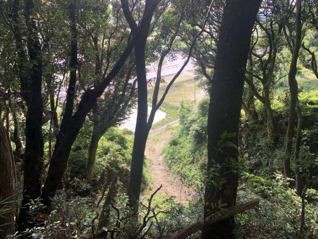 本丸の土塁の上から、最初に入ってきた道が見えました。