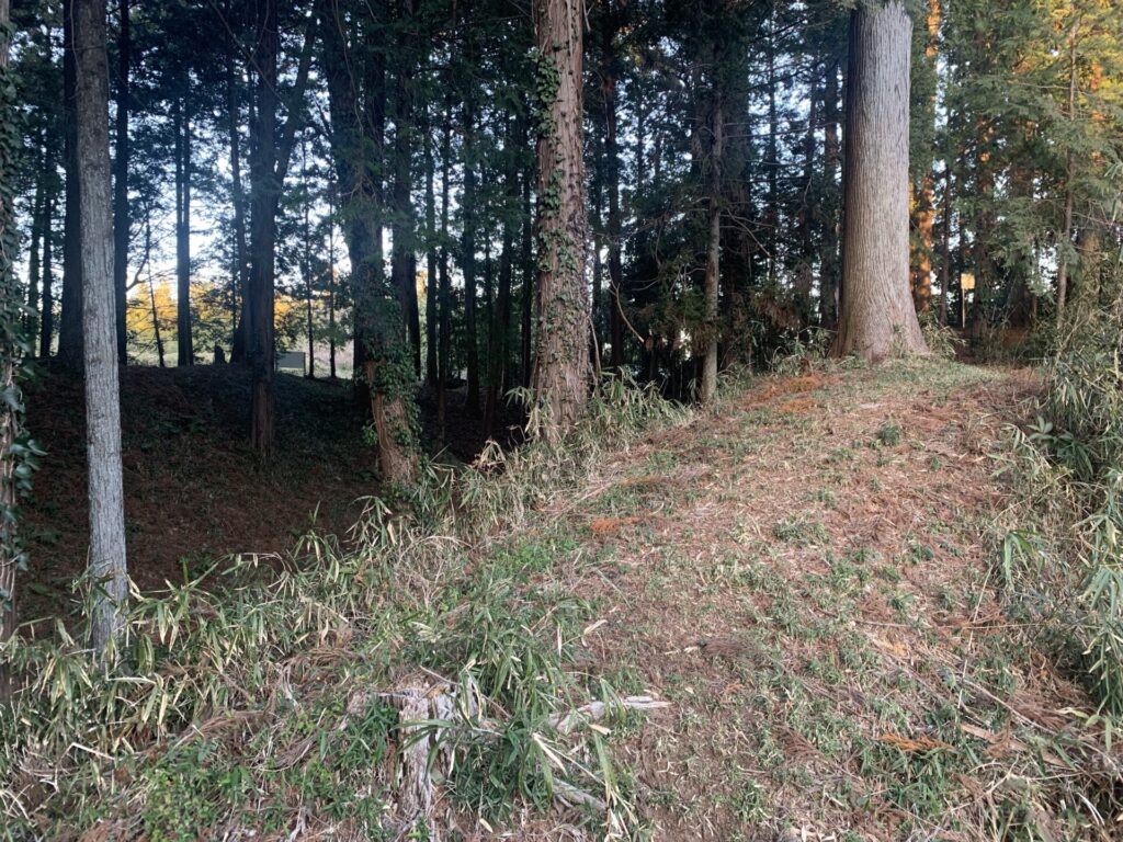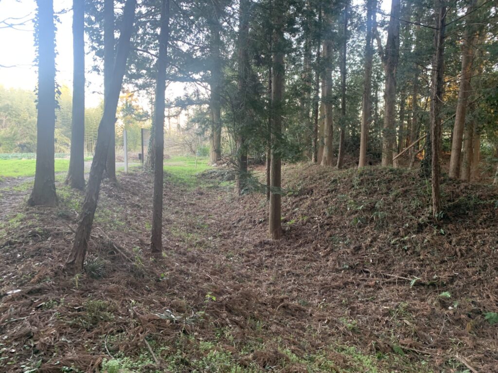 手前に土塁があり、さらにその奥にもう一つ、少しだけ高い土塁があるのがお分かりでしょうか?