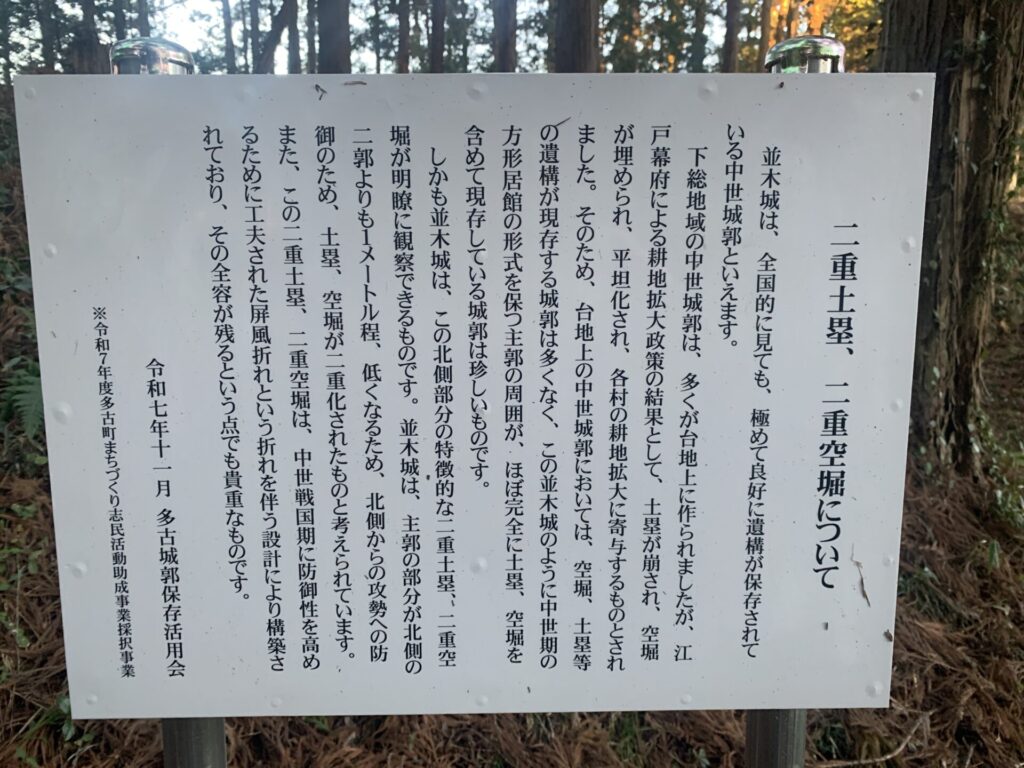 こちらが案内板に記載のあった並木城の説明文です。