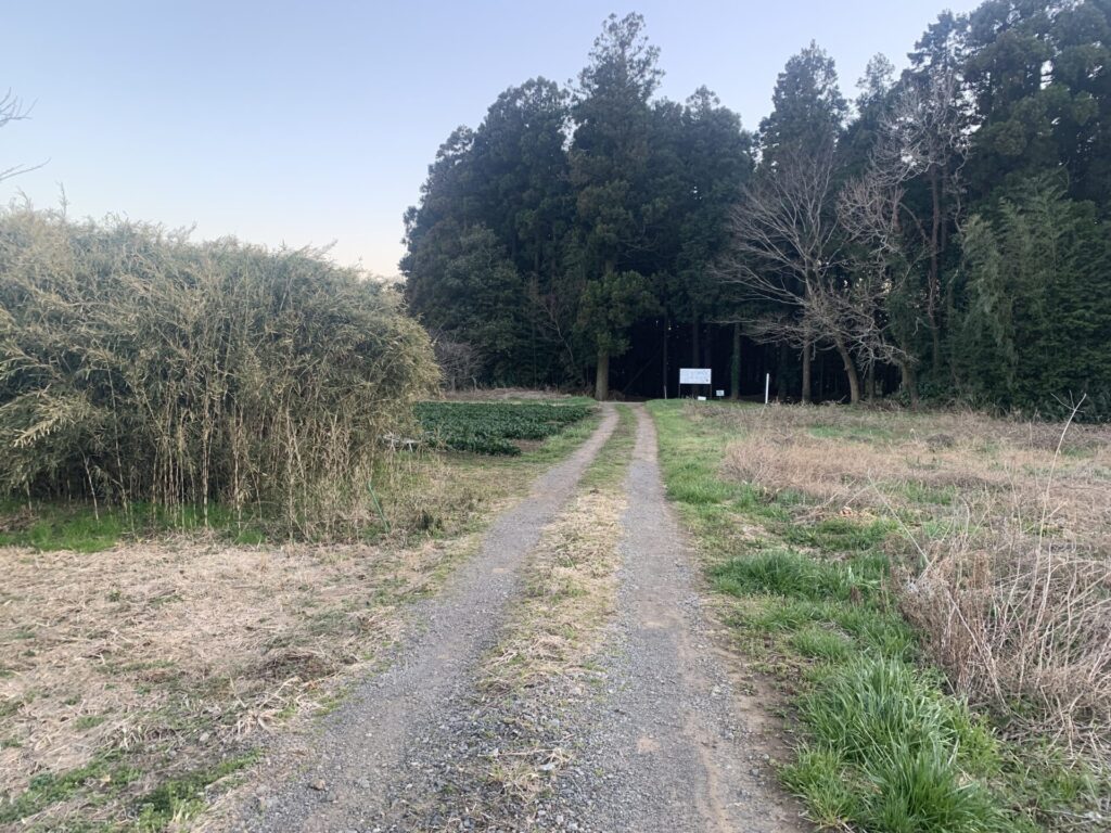 その「日蓮宗光明寺」を横目に、畑地の農道らしき道をまっすぐ進んだ先に、