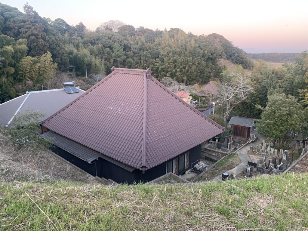 いつの間にか眼下に「日蓮宗光明寺」というお寺が見えます。