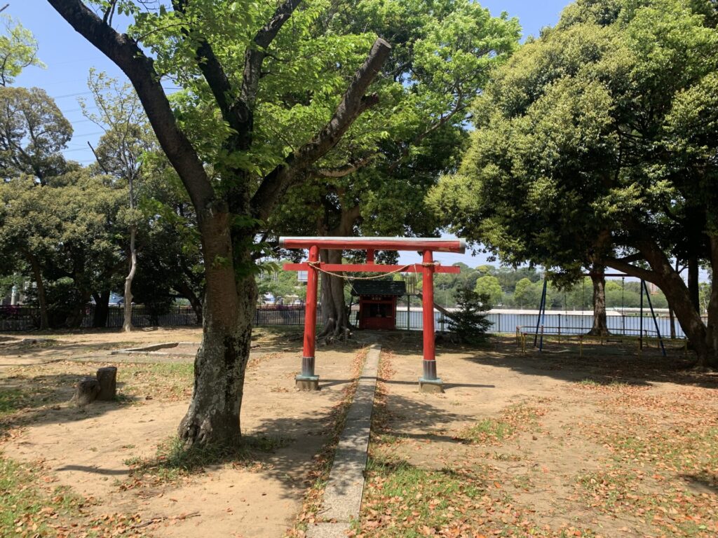 道路を渡ってすぐに、弁財天神社の鳥居が目に飛び込んできます。