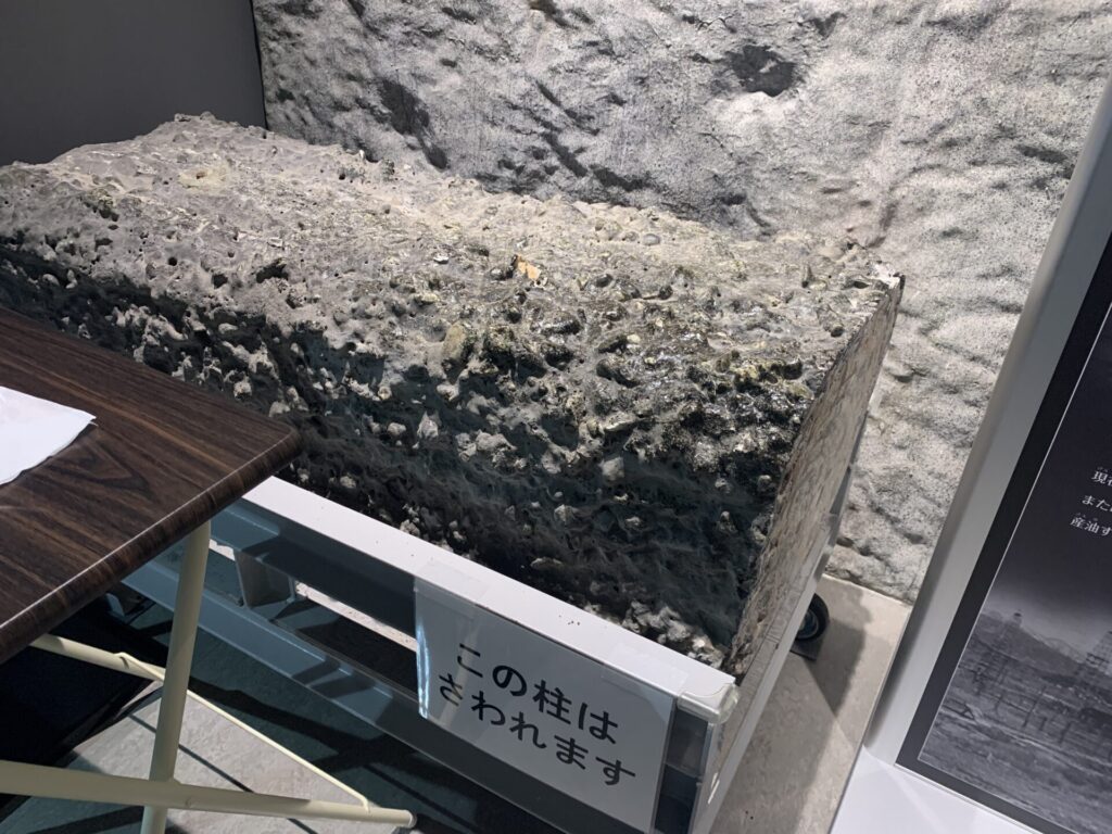 当時の焼けただれた製油所の柱です。