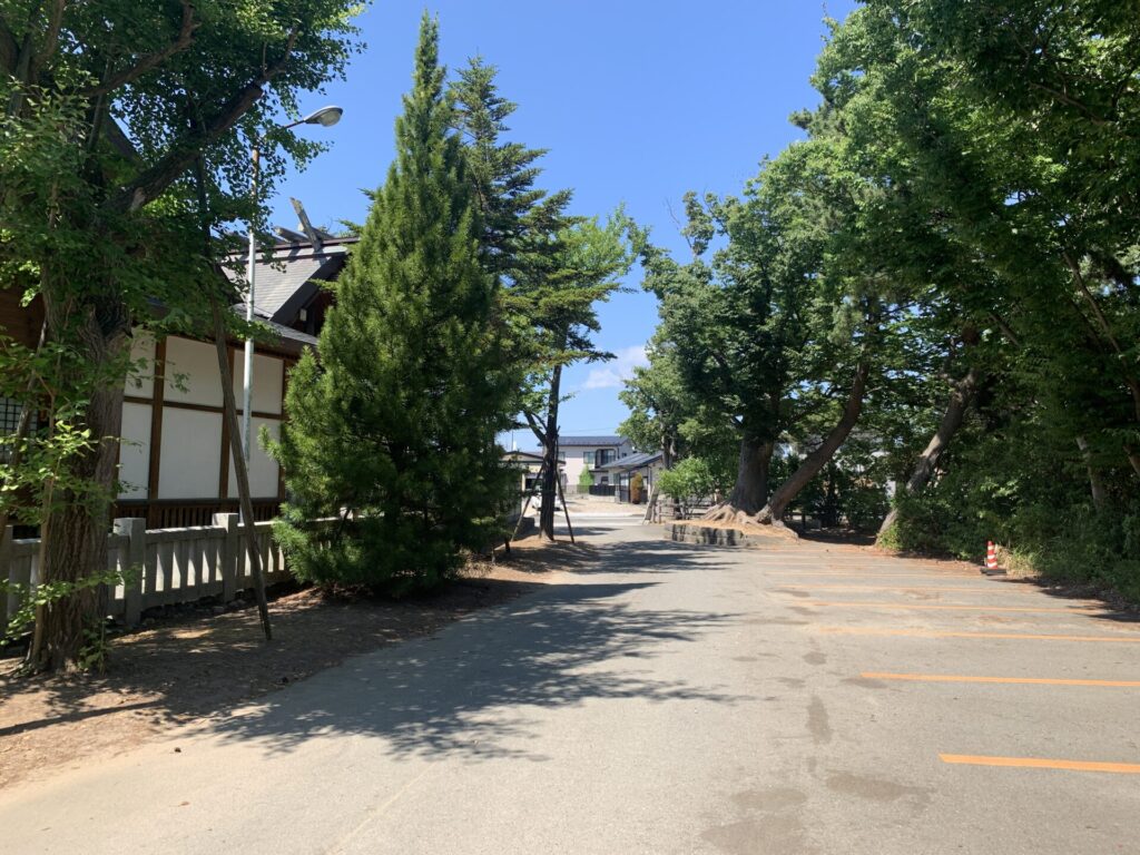 『土崎神明社』社殿の右側には数台の駐車スペースがあります。