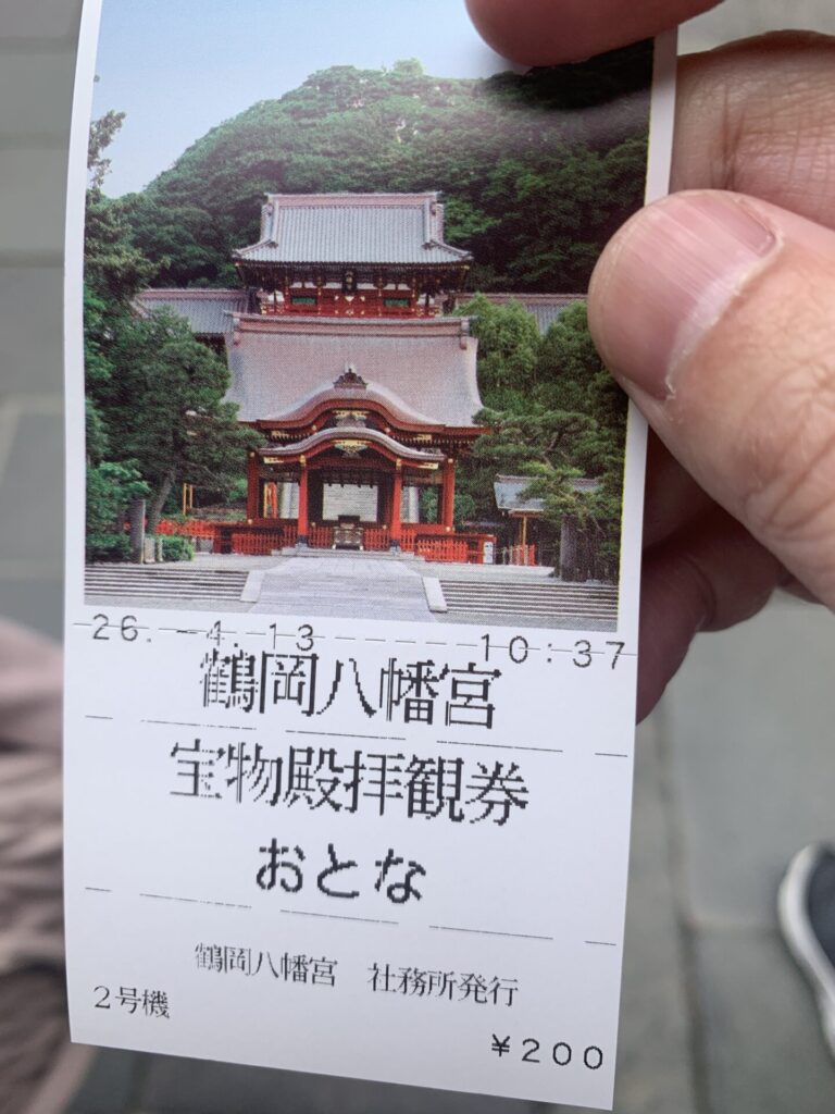 こちらのチケットを購入し、八幡宮の奥にある『宝物殿』も拝観させていただきました。