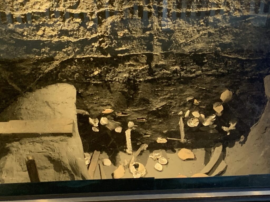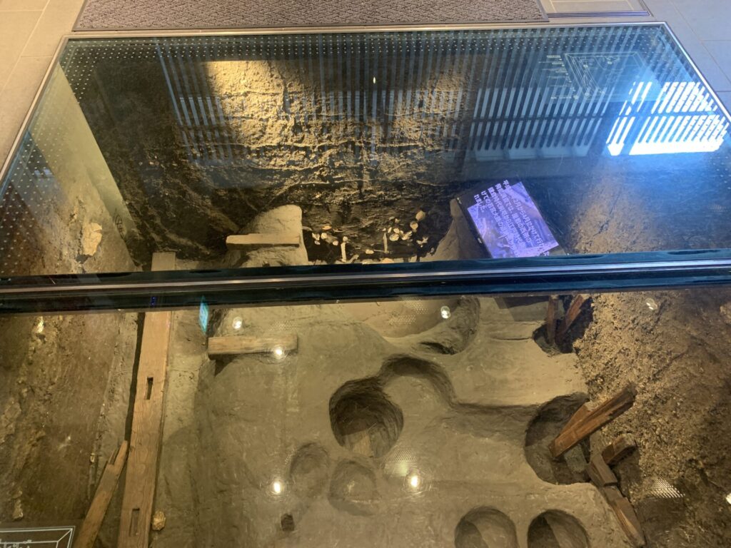 ガラスの下には、発掘された遺構が。。