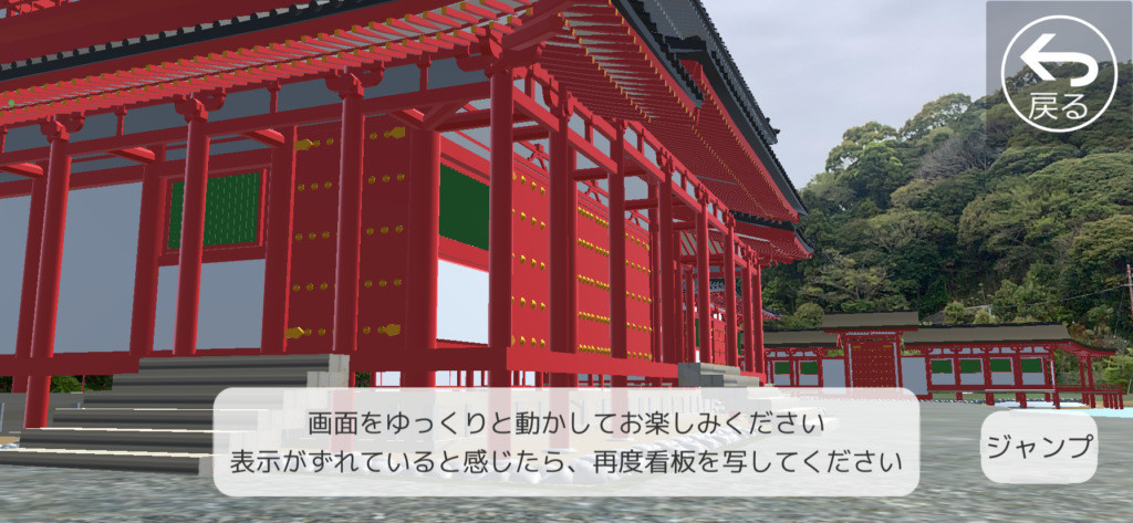 目の前の堂宇跡にスマホカメラを向けると、、