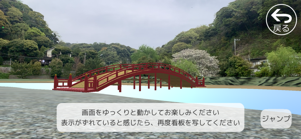 池にかかる橋まで再現されて見えます。